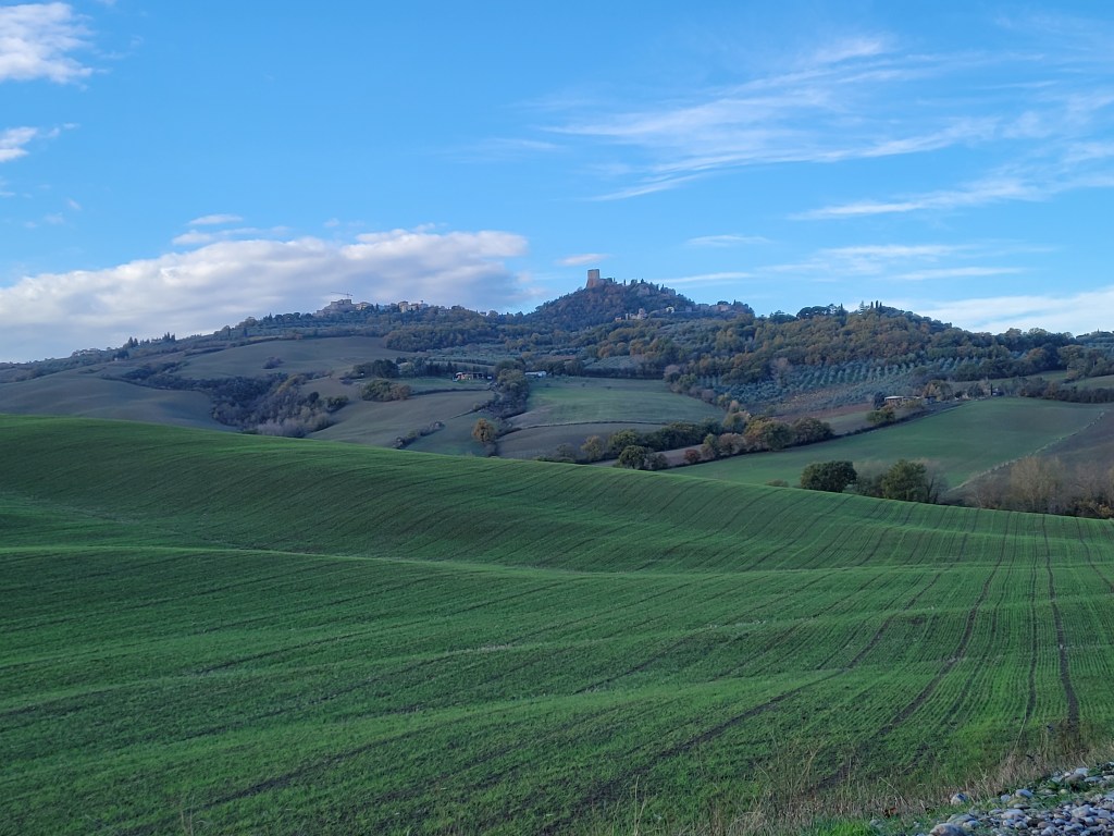 Next morning, after a boost of cappuccino and a pistachio cannoli, we visit San Gimignano by day, Volterra and Monteriggioni.