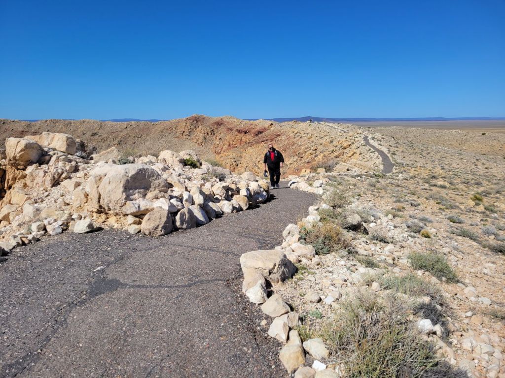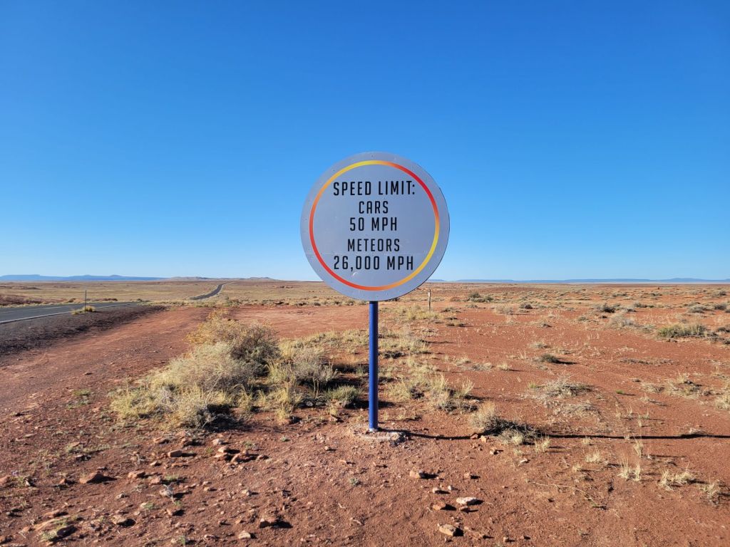 After our night stay in Flagstaff, we drive to our last attraction, the Meteor Crater. On the way, it seemed we were the only car for miles that reminded me of such movies speeding down a single road, rising dust clouds behind the wheels and hearing the dryness of the soil. Every so often we’d get a sign indicating the remaining distance to the meteor crash.