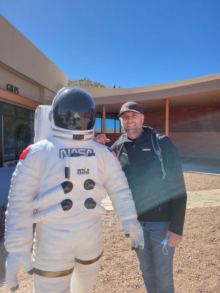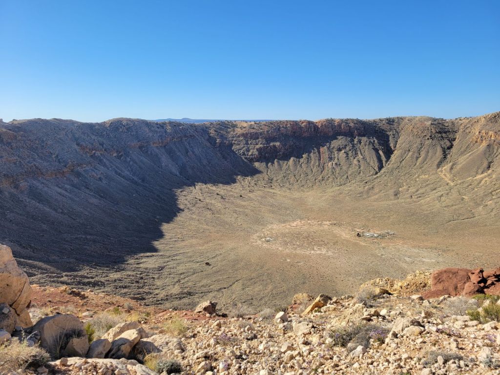 We took a tour that involved walking a certain portion of the actual meteor crash site perimeter and although at times the wind was howling, the experience was truly fascinating. Here we stood in the area that a meteor hit the surface of the earth at 26000 miles per hour 50 000 years ago. With slight elevation, Elan kept his distance behind us but made for a great shot!