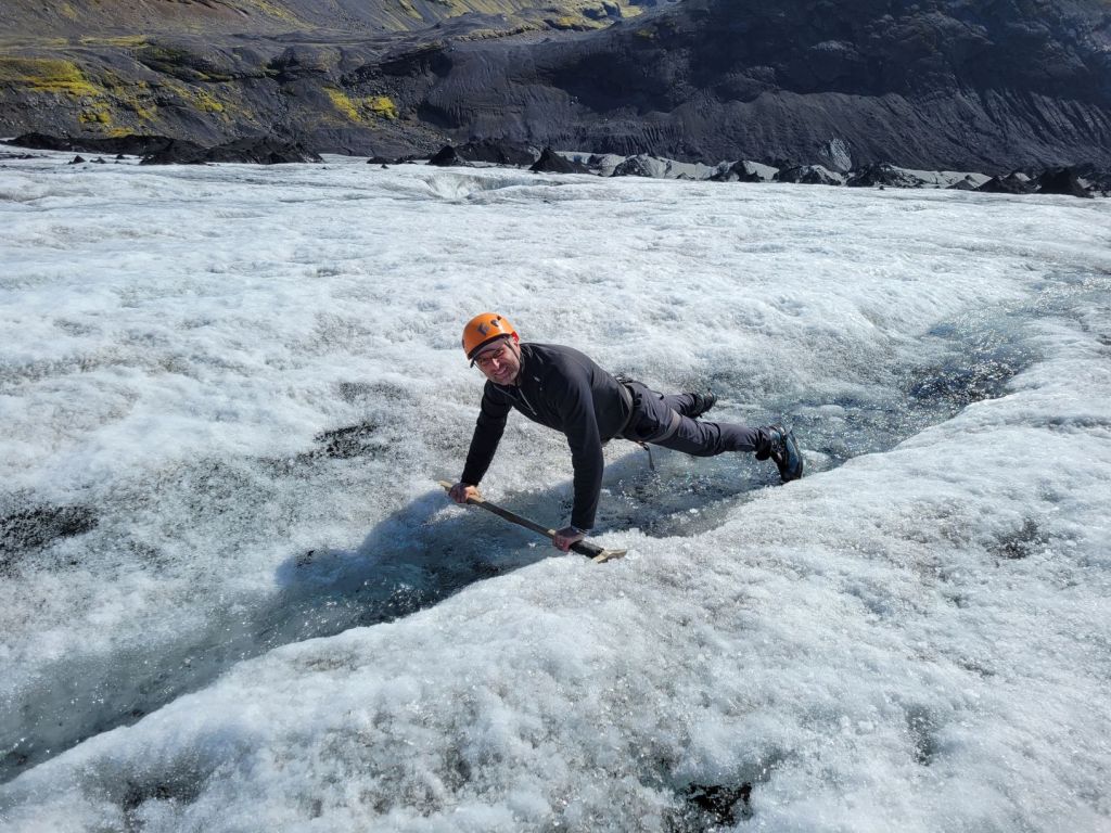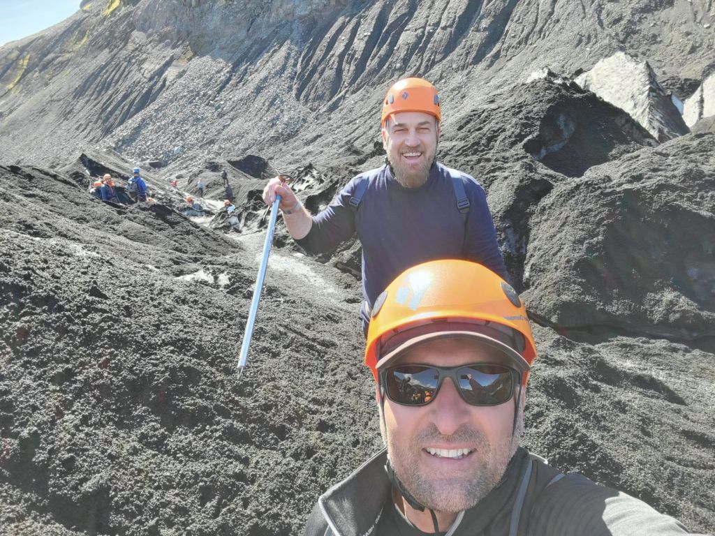 We continue the hike increasing our elevation and at one point, as we were ahead of schedule we had the opportunity to relax for several moments and take in the great scenery. We even drank straight from the mountain water source. Another interesting fact is that this particular glacier’s average ice thickness is roughly 200 meters with the core being over 600 meters.