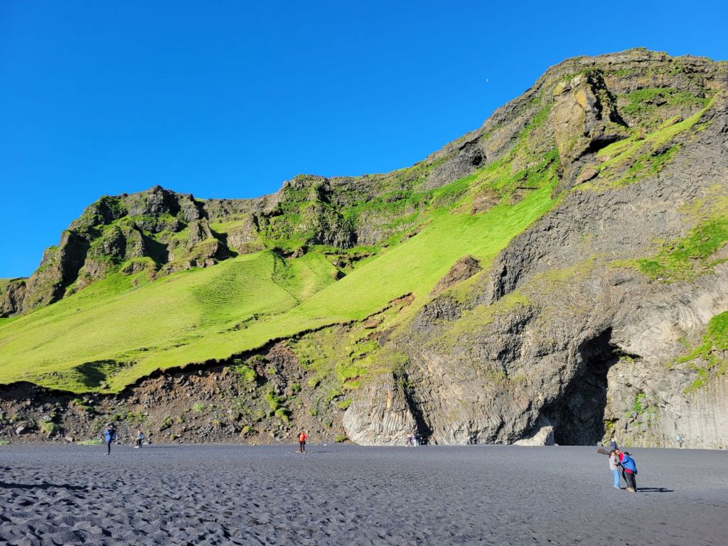 Reynisfjara beach (easier known as Black Sand beach) was next on our list and again with the combination of the blue sky, black sand and green mountain tops, we were constantly reminded of how Iceland’s landscape is so surreal.