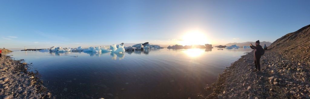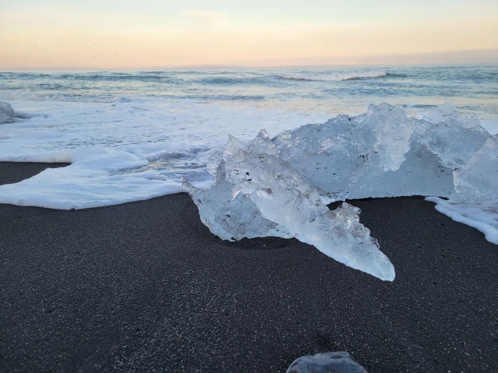 With the sun never letting down, we continue for hours to Jokusarlon Glacier lagoon. An area in which all fallen glaciers from the surrounding area congregate in this bay floating around reflecting the sun’s rays. We were peacefully entertained with seals popping up from glacier to glacier. This bay area then funnels into the ocean to which some of the glaciers are then forced to shore at Diamond Beach.
